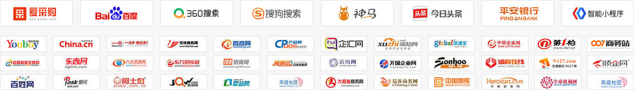 一比多 八方資源網(wǎng) K2商務(wù)網(wǎng) 首商網(wǎng) 無憂商務(wù)網(wǎng) 金屬期貨 蜘蛛客 第一槍 淘金地 萬國企業(yè)網(wǎng) 誠商在線 搜好貨網(wǎng) 供求信息網(wǎng) 如意寶建站 如意問答 最新商機 中國供應(yīng)商 卓采匯 搜貨寶 100推 企業(yè)聯(lián)合網(wǎng) 領(lǐng)商網(wǎng)